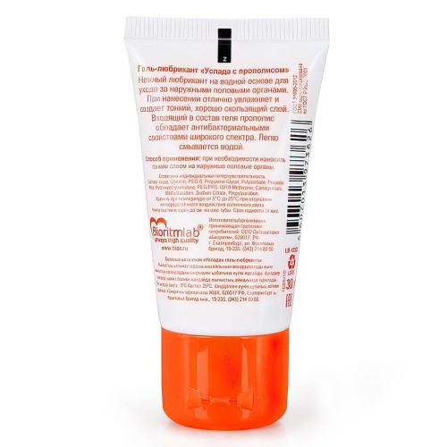Гель-лубрикант "Услада с прополисом" хорошо имитирует естественную женскую смазку, обеспечивает нежное проникновение и длительное скольжение во время близости, сохраняет целостность тканей половых органов.