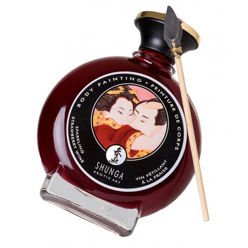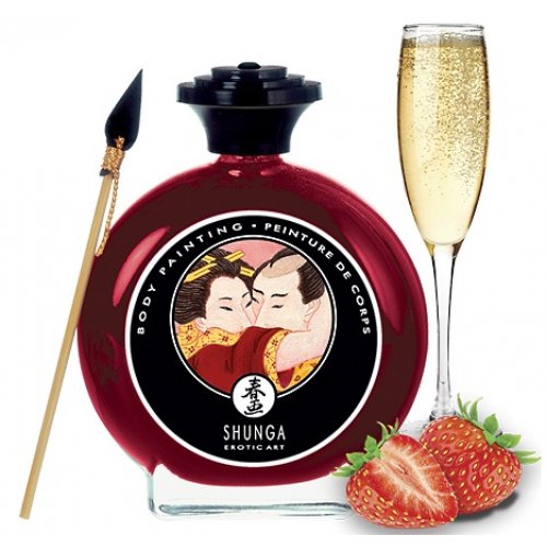 Съедобная краска для тела Shunga со вкусом клубники и шампанского – необычное дополнение к вашим играм любви. В комплекте с бутылочкой, стилизованной под японские принадлежности для каллиграфии, идет специальная кисточка.