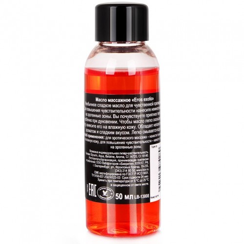 Масло Eros Exotic придаст любовным играм дополнительной пикантности. Его приятный персиковый аромат окутает облаком сладости и неги.