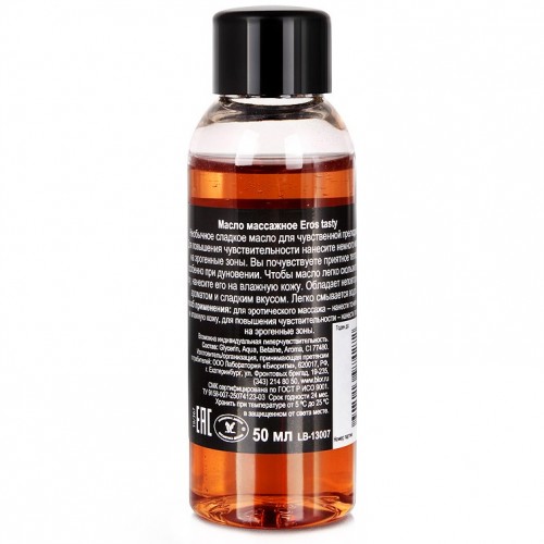 Нежные ласкающие прикосновения рук в сочетании с маслом Eros Tasty помогут расслабиться и ощутить успокаивающее тепло, особенно при дуновении. Использование масла во время массажа повысит чувствительность, обеспечит продолжительное скольжение. Против него просто невозможно устоять. Оно завлекает своим бархатистым терпко-сладким ароматом на грани гастрономии и эротики.