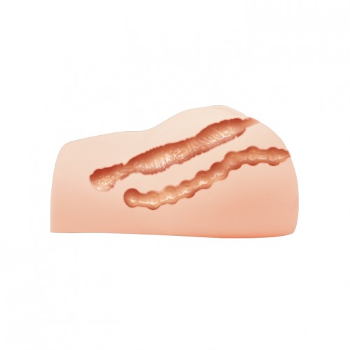 Вагина-мастурбатор в полный размер в позиции догги-стайл. Маструбатор имеет два отверстия для использования - попка и вагина, внешне максимально приближенные к реальности. Рельеф любовных отверстий прибавляет дополнительные ощущения при использовании.
