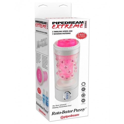Pipedream Extreme Toyz Roto-Bator Pussy оснащен ультра сильным японским мотором. Полностью автоматический мастурбатор имеет 3 скорости и 7 захватывающих вращений. Кнопка реверса вращения мгновенно меняет направление, что позволяет экспериментировать с бесконечными комбинациями удовольствия каждый раз когда вы его используете. Он спроектирован с независимым управлением функции направления вращения.