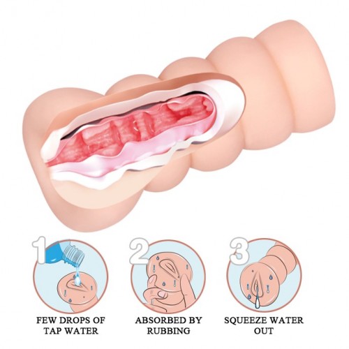 Особенность игрушки заключается в том, что при добавлении нескольких капель воды в тоннель мастурбатора, материал принимает консистенцию скользящей, увлажняющей смазки.