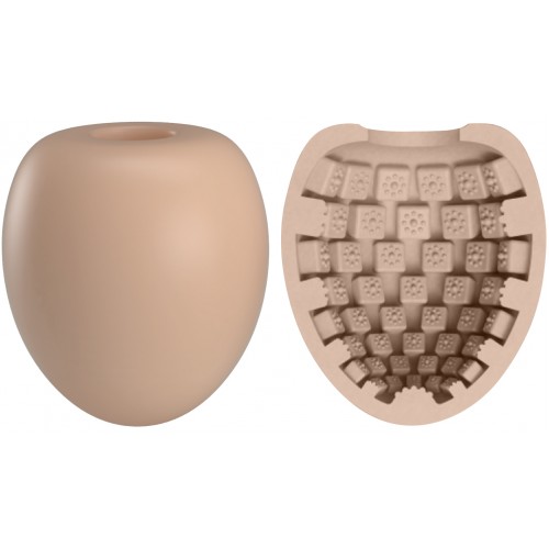 Освободите яичко из футляра, добавьте внутрь несколько капель смазки, погрузите головку в отверстие, а после - натяните мастурбатор на всю длину пениса, даже если он размера XL!