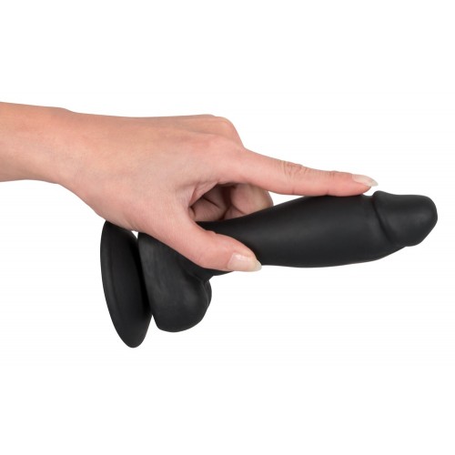 - Анальный стимулятор в форме пениса с яичками и основанием с присоской (длина 18 см, используемая длина 13,2 см в диаметре, 4,2 см в диаметре);