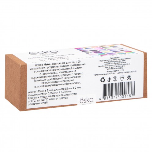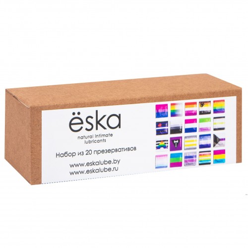 Набор Ёska - это настоящие эмоции и 20 прозрачных гладких презервативов в силиконовой неспермицидной смазке с накопителем.