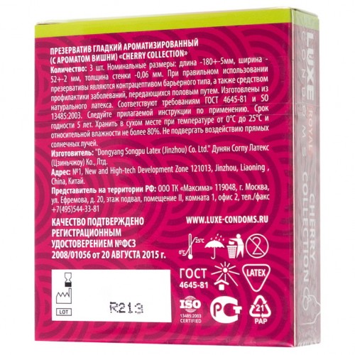 Презервативы с ароматом вишни Luxe Royal Cherry Collection 3 шт