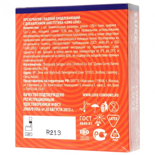Презервативы с продлевающим эффектом Luxe Royal Long Love 3 шт