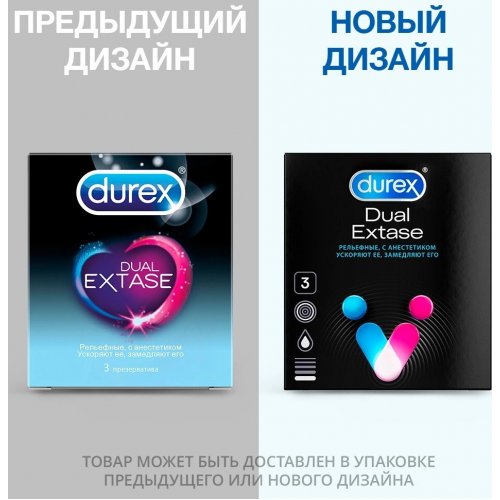 Рельефные презервативы с анестетиком Durex Dual Extase разработаны для одновременного достижения оргазма обоими партнерами.