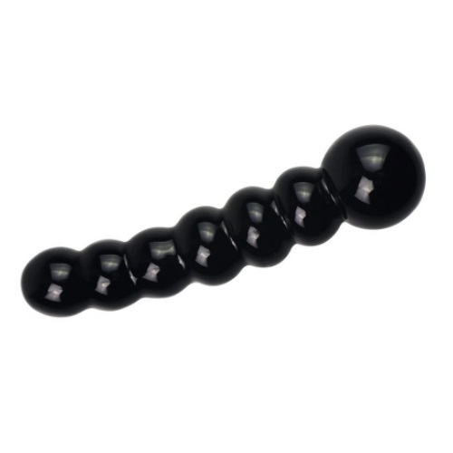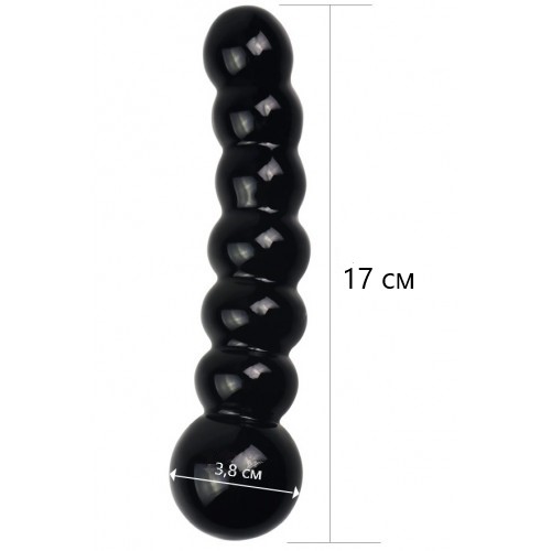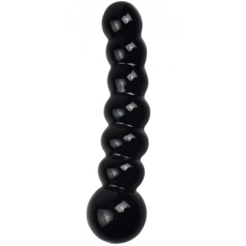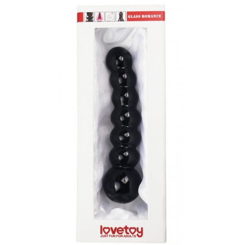 Черный рельефный фаллоимитатор из стекла Glass Romance 17 см