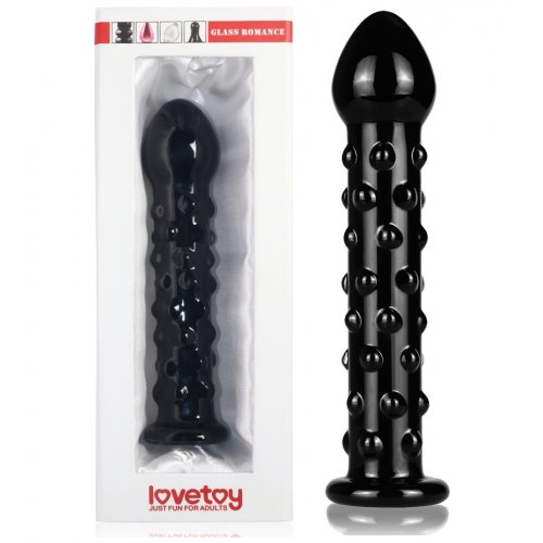 Черный фаллоимитатор из стекла Glass Romance с пупырышками 17 см