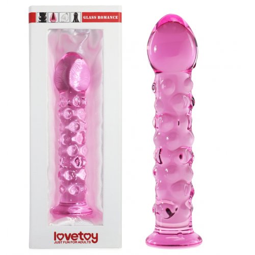 Розовый фаллоимитатор из стекла Glass Romance с пупырышками 17 см