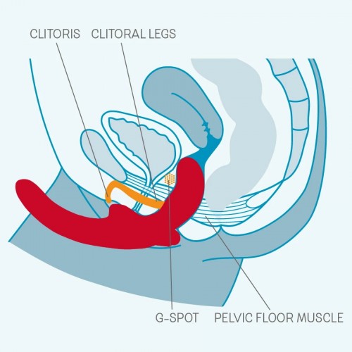 Короткий конец страпона вводится во влагалище партнерши и удерживается её вагинальными мышцами.