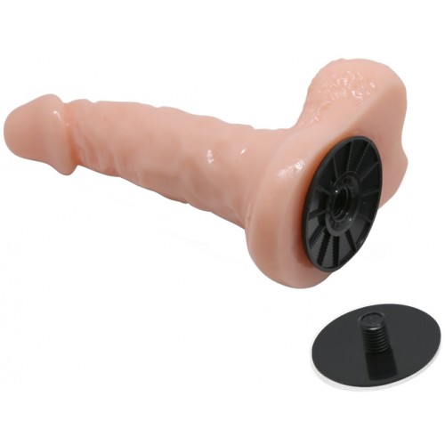Крепится насадка к съёмному штырьку, закреплённому на мягких трусиках с эластичными ремнями.