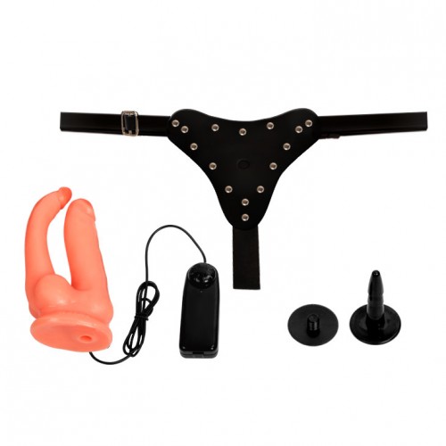 Страпон на штырьке и мягких трусиках, с выносным пультом управления позволяет пользоваться насадками различного размера за счёт съёмного штырька.