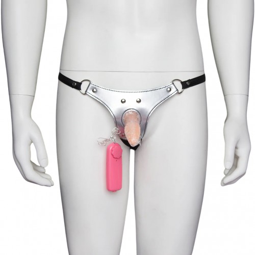 Вибрострапон на серебристых трусиках с пультом управления 11 см