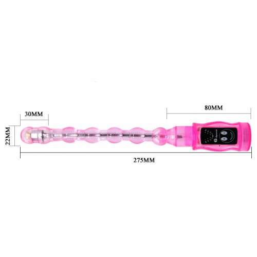 Данный анальный стимулятор представляет собой гнущуюся розовую цепочку, состоящую из 5 гладких шариков и шестого продолговатого шара с виброэлементом внутри!