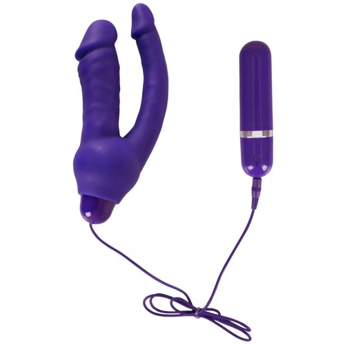 Вибратор с двумя фаллосами предназначен для одновременной анально-вагинальной стимуляции. Классический размер и форма позволяют использовать интимную игрушку с комфортом.