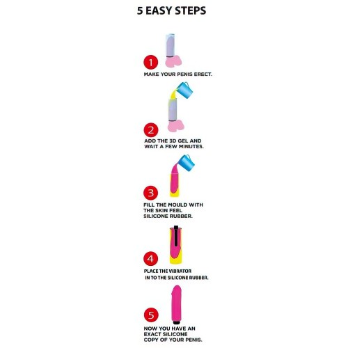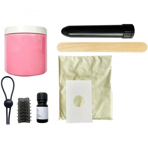 В набор входят: 1 пакет 3D-геля (формирующий порошок), затвердитель, силиконовая масса, лассо для пениса, манжета, вибратор, держатель для вибратора, ложки для перемешивания, резиновые перчатки и инструкция.