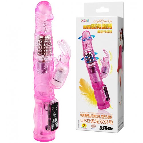 Влагозащищённый вибратор с ротацией и клиторальной стимуляцией.