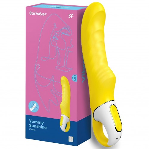 Вибратор Satisfyer Yummy Sunshine - это яркий вибратор для самого яркого оргазма. Его выраженный ребристый рельеф, анатомический изгиб и два мощных моторчика обеспечат тебе самую бурную кульминацию.