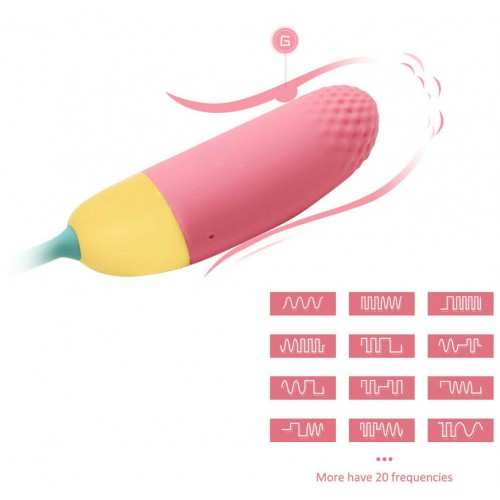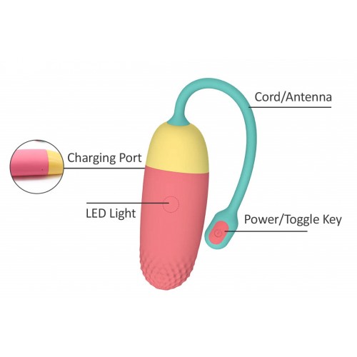 Кончик виброяйца имеет рельефную поверхность, что обеспечивает дополнительную стимуляцию чувственных участков. Присутствует также и удобный силиконовый хвостик, с помощью которого виброяйцо легко извлекать. На хвостике расположена и кнопка для управления вибрацией. Оснащена игрушка 20 различными режимами мощной вибрации.