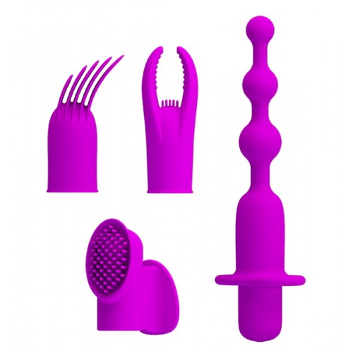 Набор игрушек Pretty Love Joys Collection состоит из мощной перезаряжаемой вибропули с четырьмя различными насадками, которые помогут насладиться незабываемой стимуляцией любых эрогенных зон!