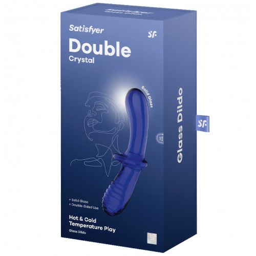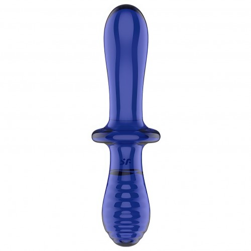 Двусторонний фаллос из стекла Satisfyer Double Crystal синий 20 см