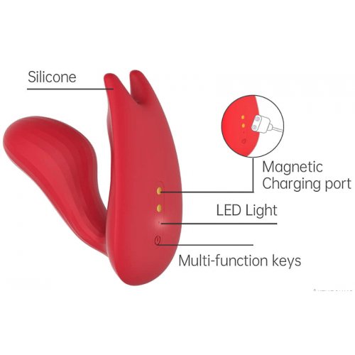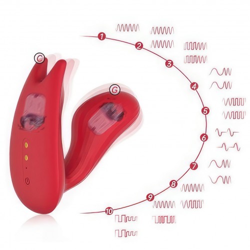 Вибратор имеет два кончика и два мотора: вагинальный - диаметром 2,8 см - имеет округлую плавную форму, а второй - широкий и плоский, комфортно ложится на зону клитора.