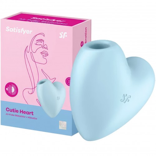 Вакуумно-волновой стимулятор с вибрацией Satisfyer Cutie Heart голубой