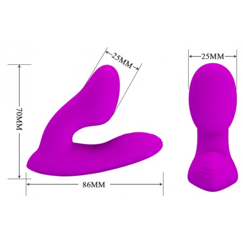 Крупная и специальным образом изогнутая головка воздействует на простату мощными пульсациями. В дополнение основание обеспечивает массаж промежности .Несмотря на компактный размер, вибратор очень мощный – имеет 2 моторчика – по одному в каждой части. Pretty Love Melvin имеет целых 12 различных режимов вибрации, которые с легкостью переключаются при помощи кнопочки на пульте ДУ либо на самой игрушке.