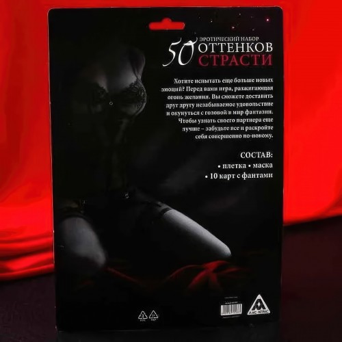 Эротический набор 50 оттенков страсти: маска, плётка, фанты