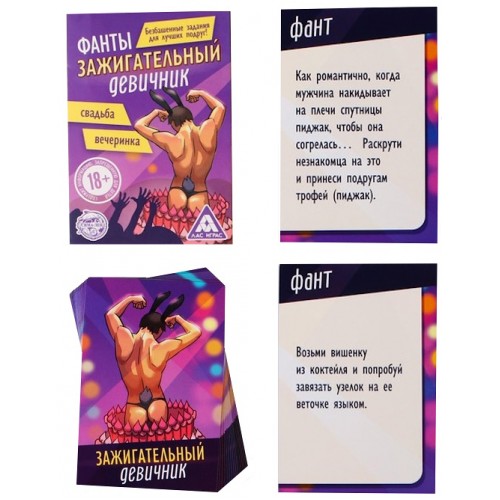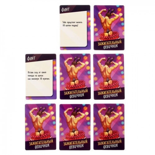 Собираетесь с подругами зажечь на свадьбе или вечеринке? Пусть все вокруг лопнут от зависти, ведь перед вами уникальный набор фантов, который сделает праздник незабываемым. Обязательно возьмите фотоаппарат - о вашем веселье будут ходить легенды! Вам предстоит… продемонстрировать все секреты обольщения незнакомцев, исполнять грязные танцы и выполнять другие провокационные задания.