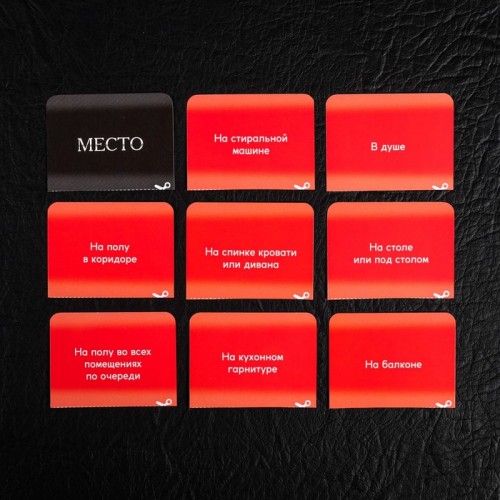 Определившись с этим моментом, пара тянет по карточке из колод «Место» и «Поза». Ну а теперь начинается самое интересное — окунитесь в пучину страсти и выполните получившееся задание без промедления!
