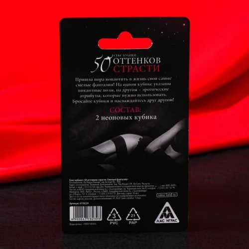 Здесь вас ждут 2 кубика. На одном из них указаны пикантные позы, а на другом — место. Бросайте кубики и наслаждайтесь друг другом!
