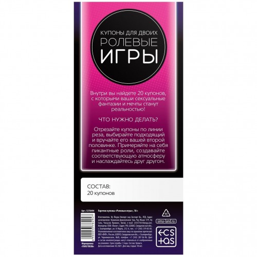 Как использовать купоны? Просто листайте страницы, выбирайте понравившуюся ролевую игру и воплощайте её в жизнь. А если добавить соответствующий реквизит и музыку, атмосфера станет ещё горячее!
